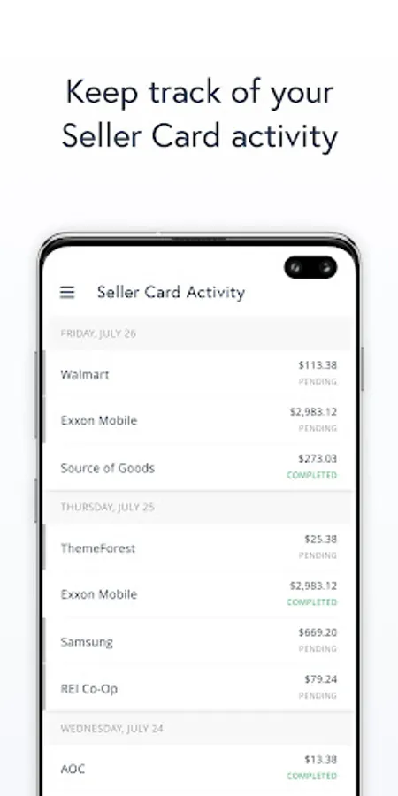 Easily track and review your completed Payability Seller Card transactions, pending transfer requests, and pending card transactions all in one place