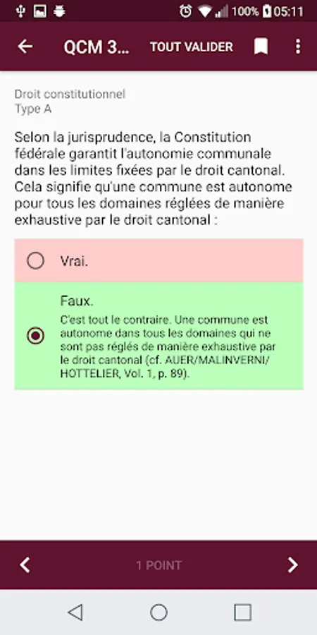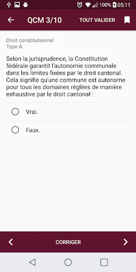 With QuizzLex, you can lead you anywhere, anytime, through multiple choice questions (MCQ) and true / false statements, created by students experienced law. With detailed corrections for each question, QuizzLex covers topics of first year law in Geneva. Using this application, effectively revise your knowledge: testing you.