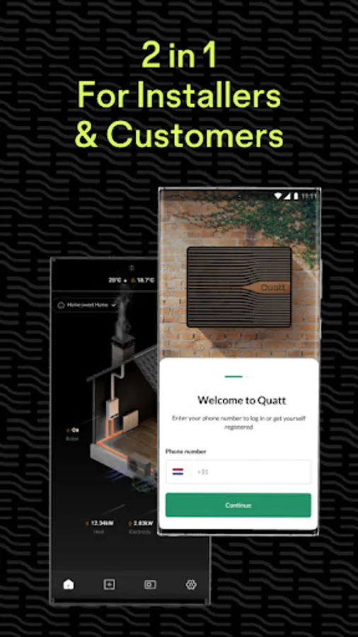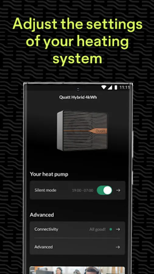 App to install, manage and operate your Quatt Hybrid. Switch on and off, set temperature, adjust sound level. Contact Quatt Support directly.