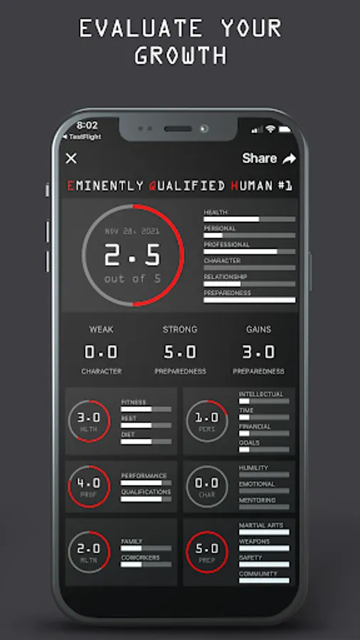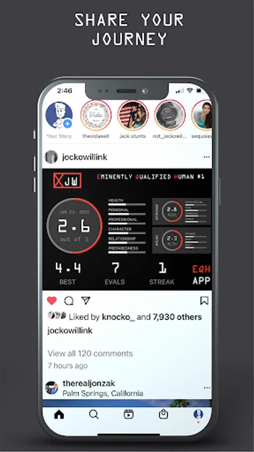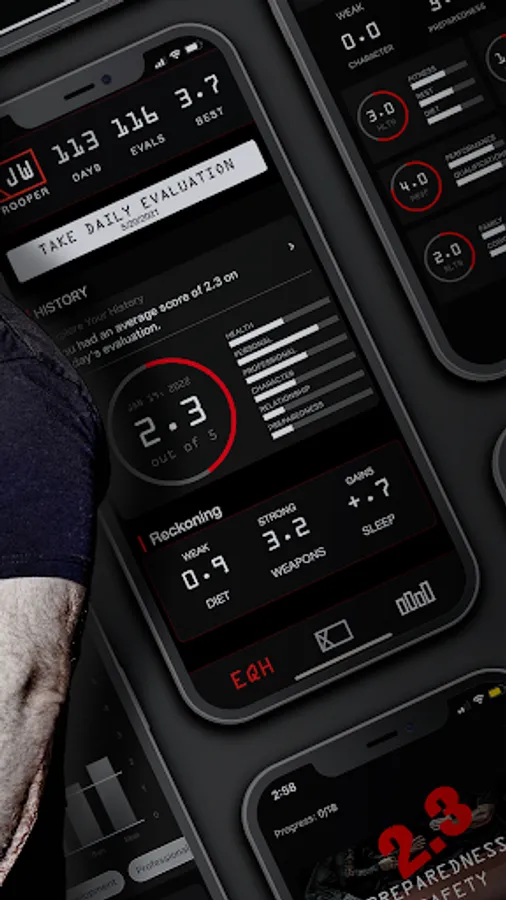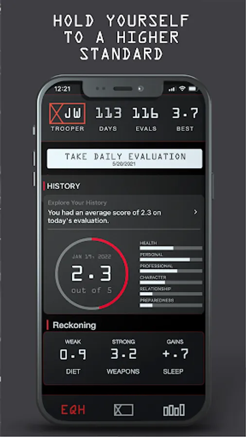 The Jocko EQH App is your ultimate weapon in the war against weakness and complacency. It is built for those that strive to become better at the things in life that matter—providing users with a system for daily self evaluation across six lifestyle categories and eighteen sub categories. If you hold yourself accountable for reaching your maximum potential—if you aspire to become an Eminently Qualified Human… then come GET SOME.