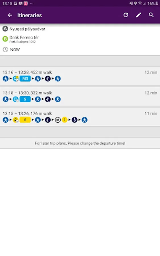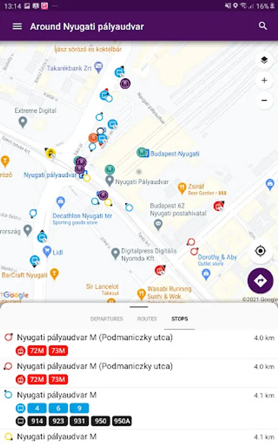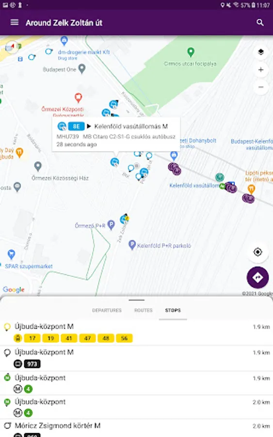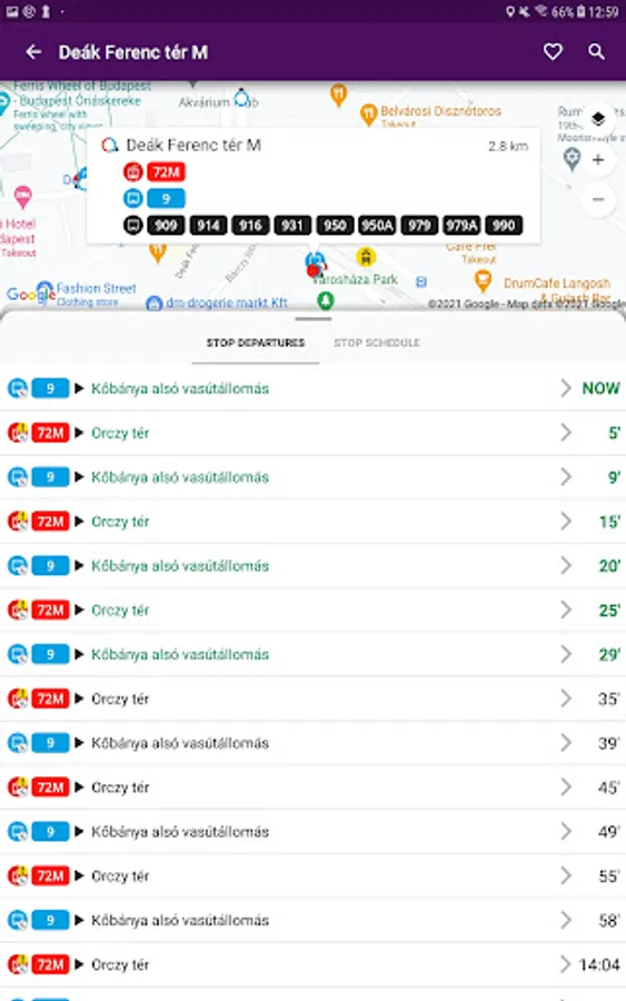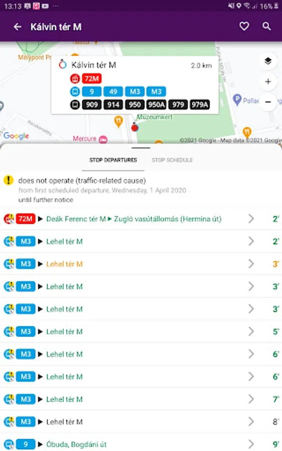 On nearby departures screen we collected departing routes from stops in the area, which will start in the near future.