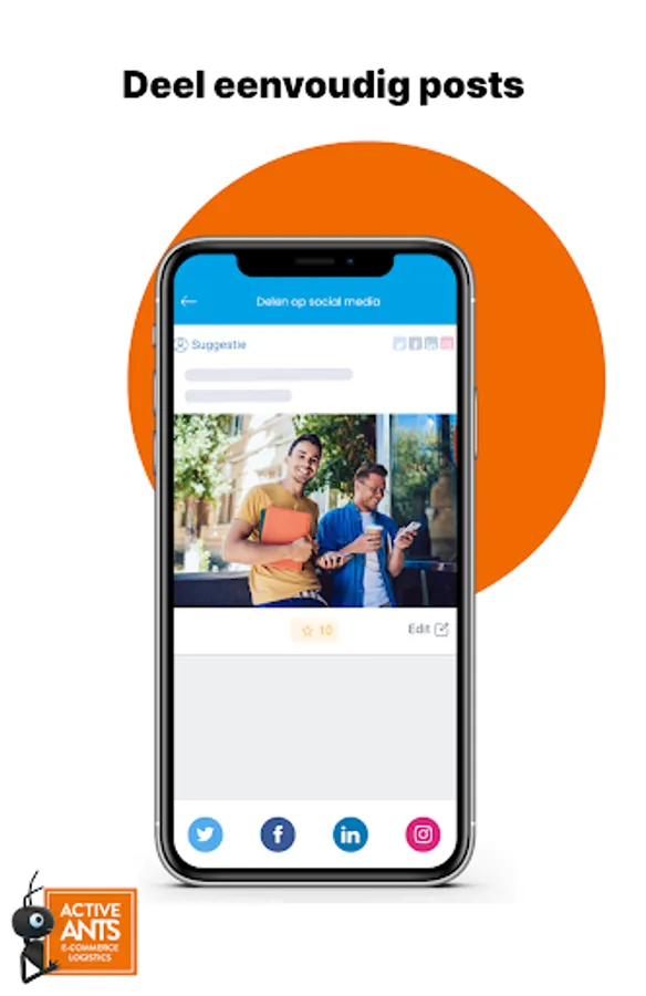Active Ants is a Social branding app that you can use strategically to publish, analyze, advertise and collaborate with all teams of the organization. You convert authentic stories from an employee or other stakeholders into unique social media content that can be shared by everyone within the organization. The platform is also ideally suited for a strategic, top-down social media approach. Whether you want to involve employees, franchise entrepreneurs, resellers or other stakeholders in the use of social media. With Active Ants you create an enormously relevant reach-through personal channels and business channels of all people involved.