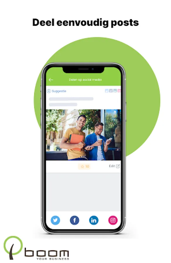 Together with your colleagues and relations, you receive ready-made social media messages from your organization, which you share with one click on your personal and business social media accounts. In addition, help your social media manager by uploading interesting content yourself. In this way you build the image of your organization or brand together.
