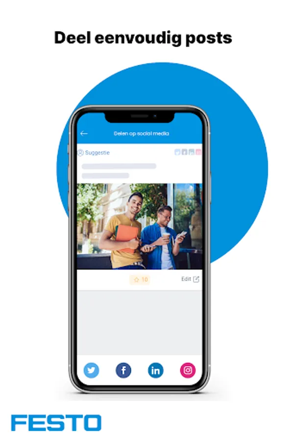 Together with your colleagues and relations, you will receive ready-made social media messages from your organization, which you can share with one click on your personal and business social media accounts. Moreover, help your social media manager by uploading interesting content yourself. This is how you build the image of your organization or brand together.