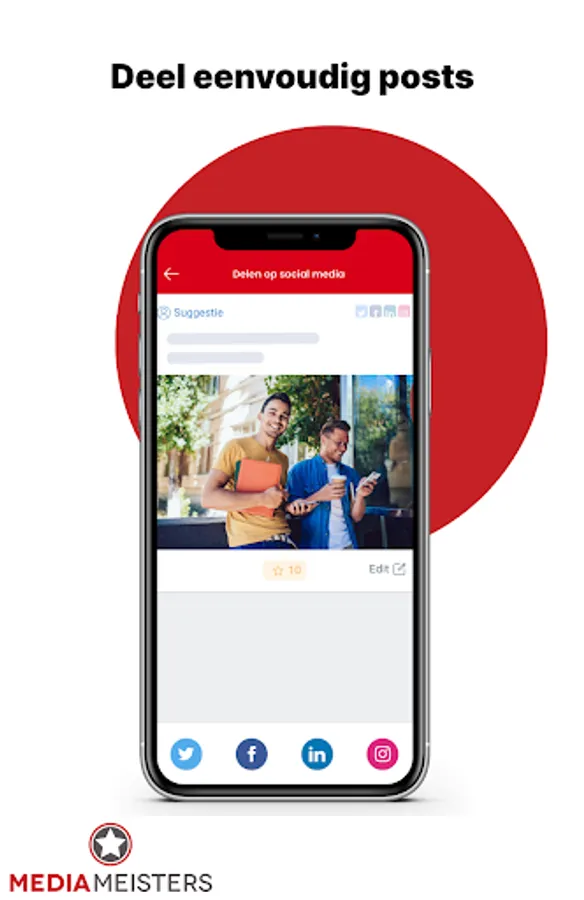 Together with your colleagues and relations, you receive ready-made social media messages from your organization, which you share with one click on your personal and business social media accounts. In addition, help your social media manager by uploading interesting content yourself. In this way you build the image of your organization or brand together.