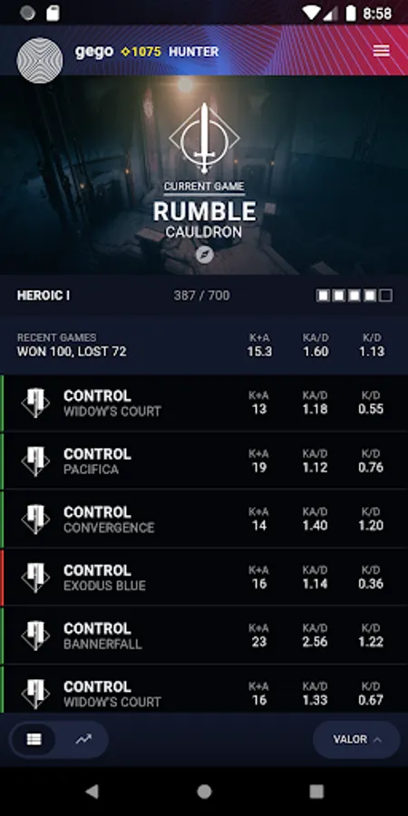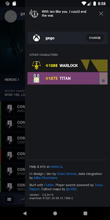 Quickly swap between characters and accounts: check out how your clan mates are doing and compare recent games.