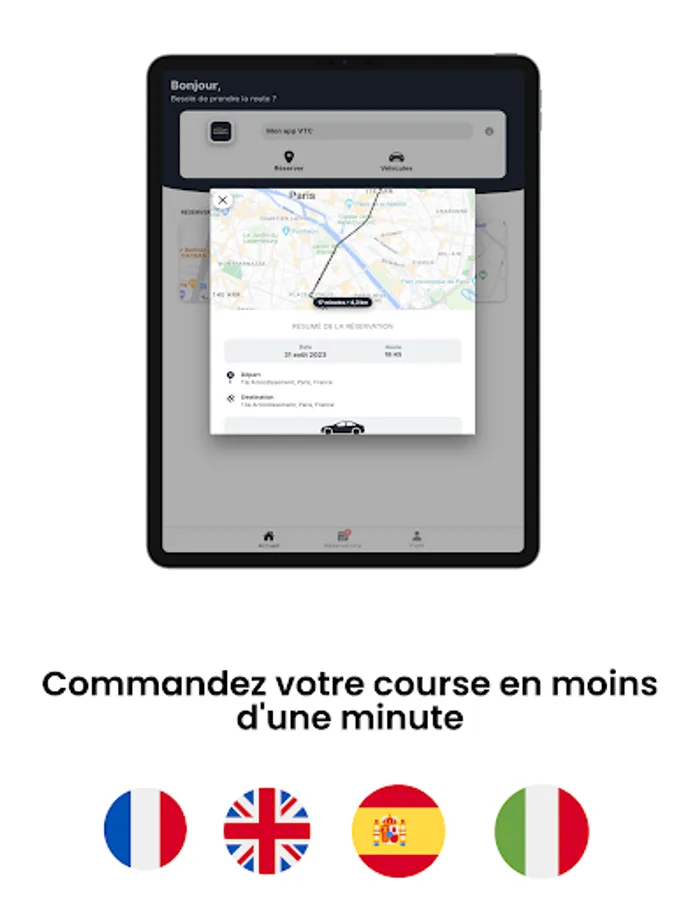 Travel safely and comfortably with our app. Our personalized transport service allows you to book a ride in Paris at any time, in just a few clicks. With our fleet of modern vehicles and our professional drivers, you are guaranteed to arrive at your destination quickly and safely.