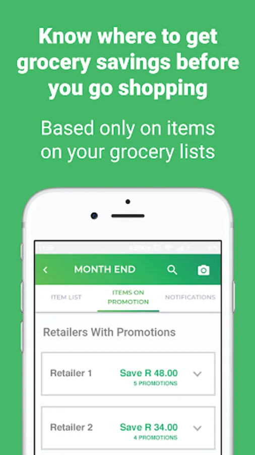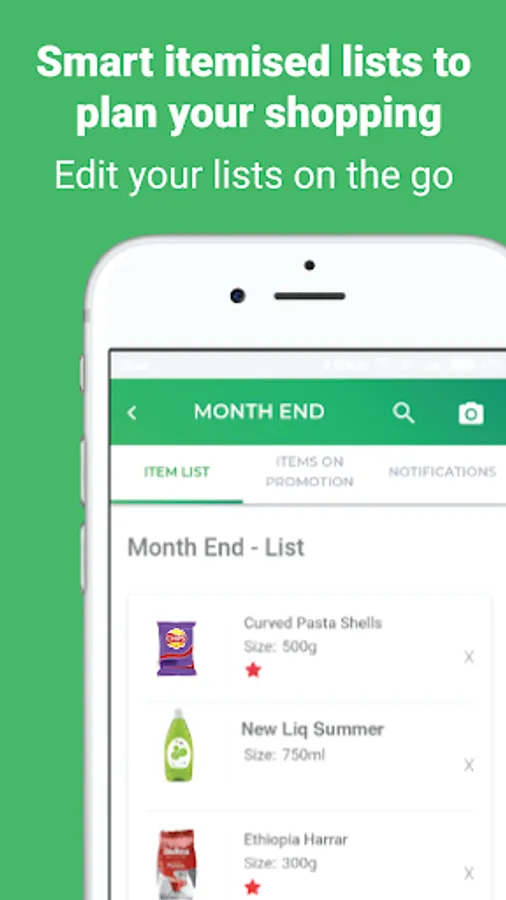* Choose when you want to receive personalized notifications to alert you about items on special/promotion based only on your itemized list. No unsolicited adverts.