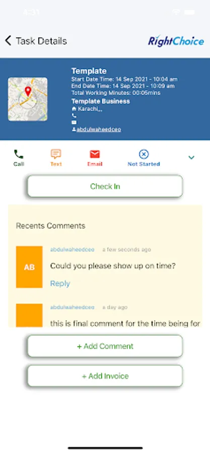 Time and attendance: Check in and Check out, task tracking, attendance, and job costing from their smartphones easily.