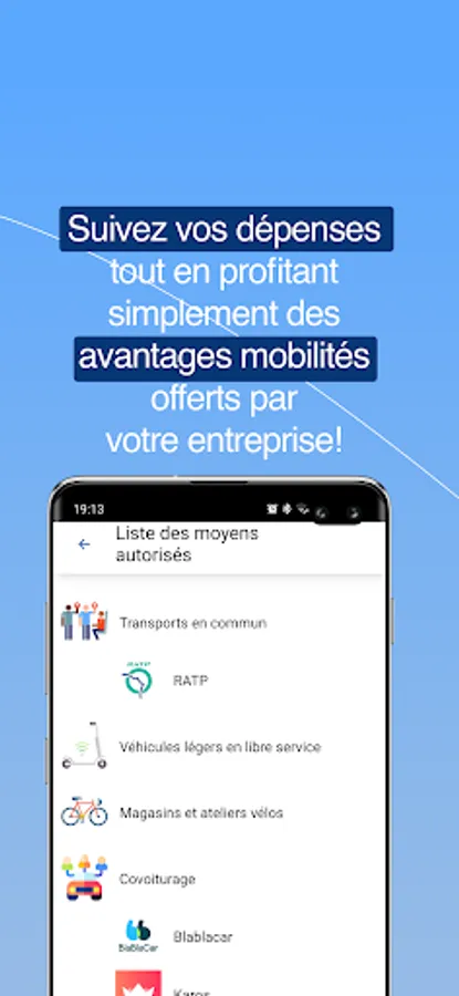 For your employees, it is a companion in the form of a mobile application and a dedicated means of payment. Together, they allow them to facilitate their trips thanks to the budget specially provided for their trips to and from their place of work or their professional journeys.