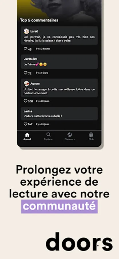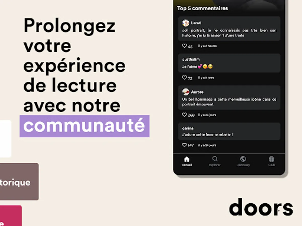 By joining Doors, you also join a community of several thousand passionate readers with whom you can share and discuss our exclusive universes: additional video content, comments, games, quizzes, etc.