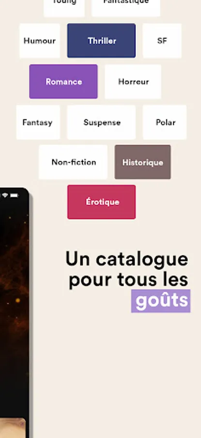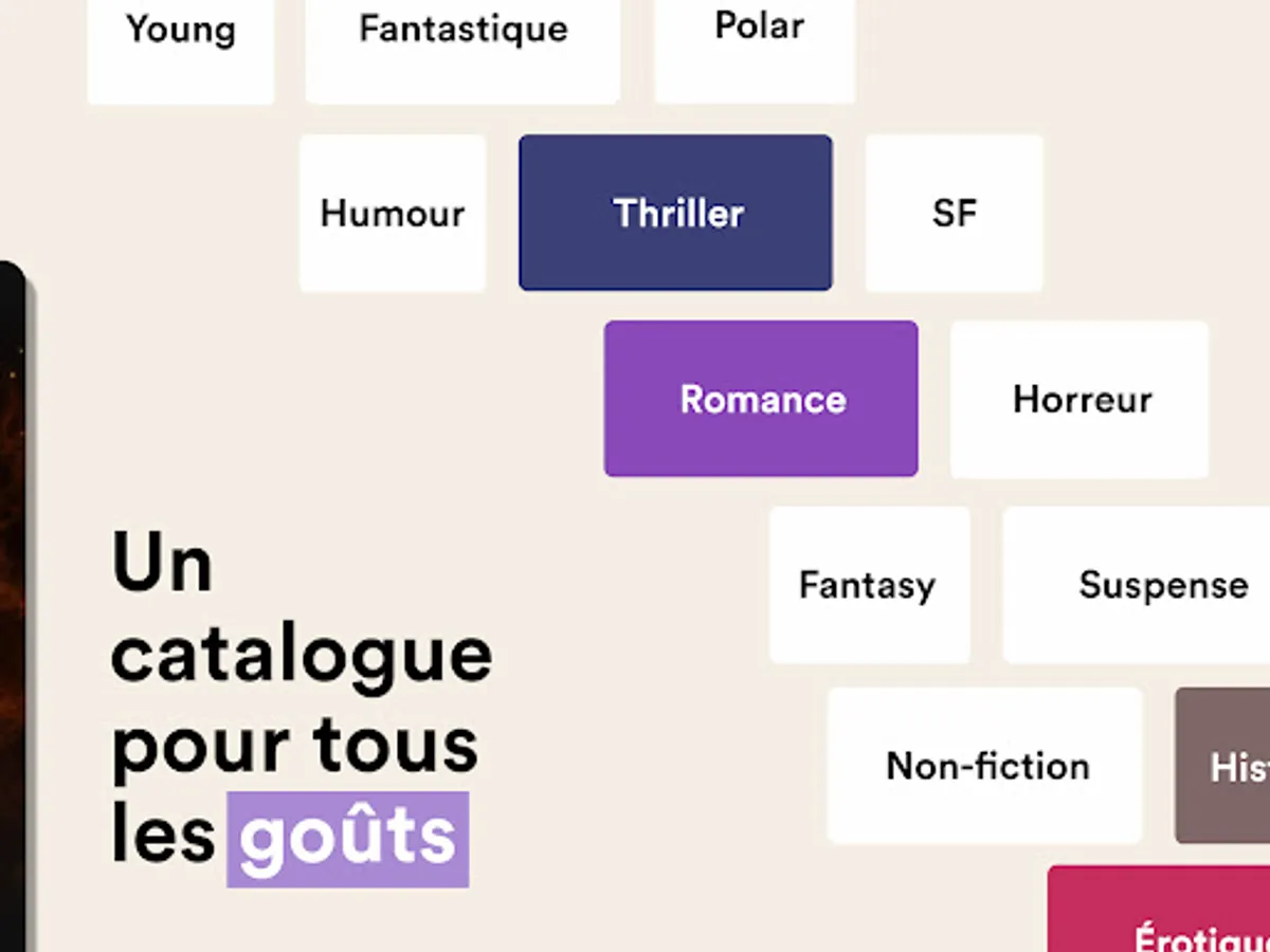 On Doors, we have chosen quality and diversity in our content. Discover a catalog of stories for all tastes: romance, comedy, thriller, thriller, suspense, sci-fi, fantasy, non-fiction, and more. All genres of reading are available on our platform.
