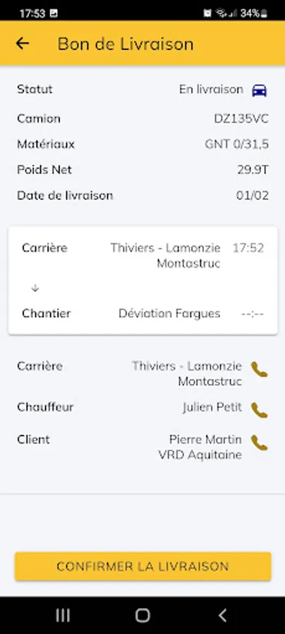 The Rockease mobile application allows construction companies and carriers to ensure traceability for all delivery notes.