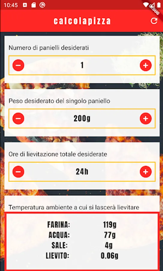 With the pizza calculator app you will get the right amount of ingredients to use for your real Neapolitan pizza.