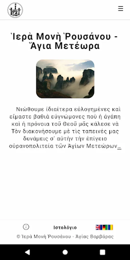 Meteora is a cluster of hundreds of larger or smaller rocks that rise above the city of Kalambaka, near the Koziakas and Hassia Mountains. Also called Meteora are the sacred monasteries which from the 12th century (and more systematically and organized from the 14th century) began to be built on imposing and steep cliffs. By the 18th century they had been built and (at times) inhabited by monks of more than 40 monasteries, cells, skeletons or hermitages. You will find this application and more information about the Roussanos Monastery ...