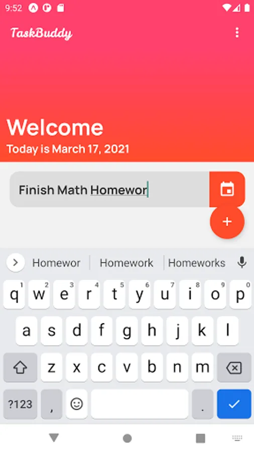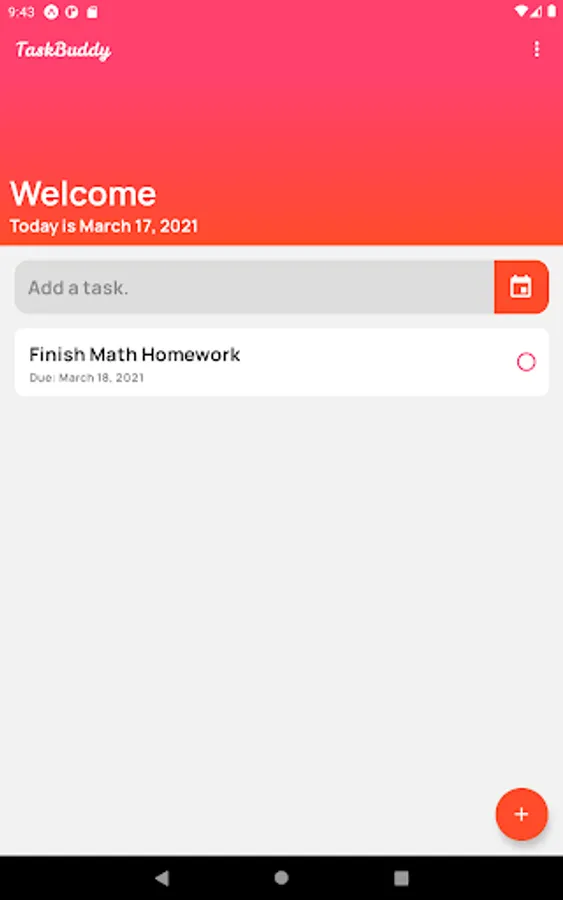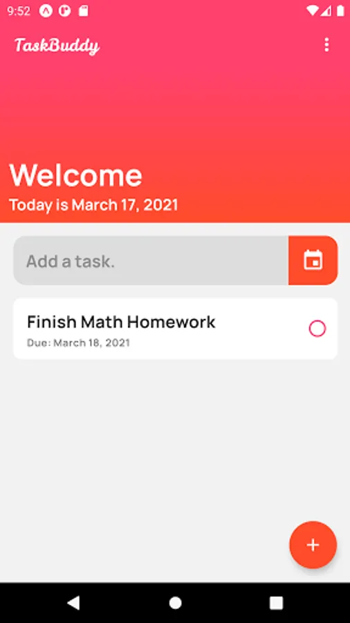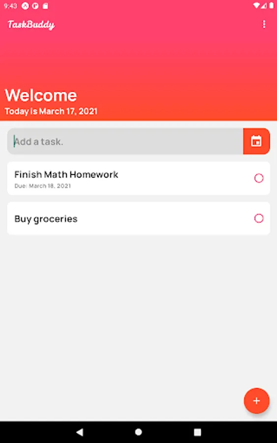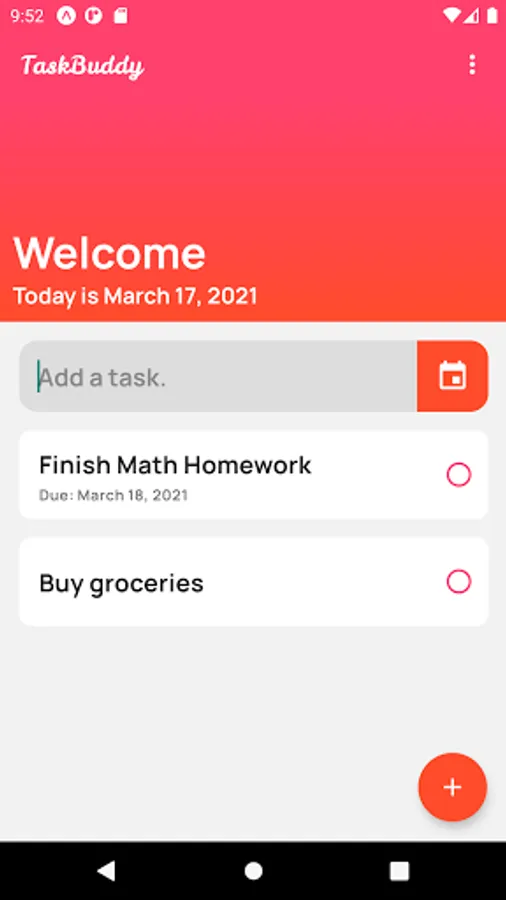 TaskBuddy is a fast, efficient, simple, and useful To-do List app that matches all your day-to-day needs. Have a science project due? Log it on TaskBuddy! Need to buy groceries? Log it on TaskBuddy.