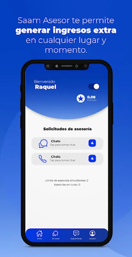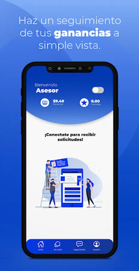Take control of your earnings by consulting in the app. To start earning, you just have to connect and attend to user requests. Adjust your schedule to win and focus on what's important. Earnings are limited only by the time you spend on the app!