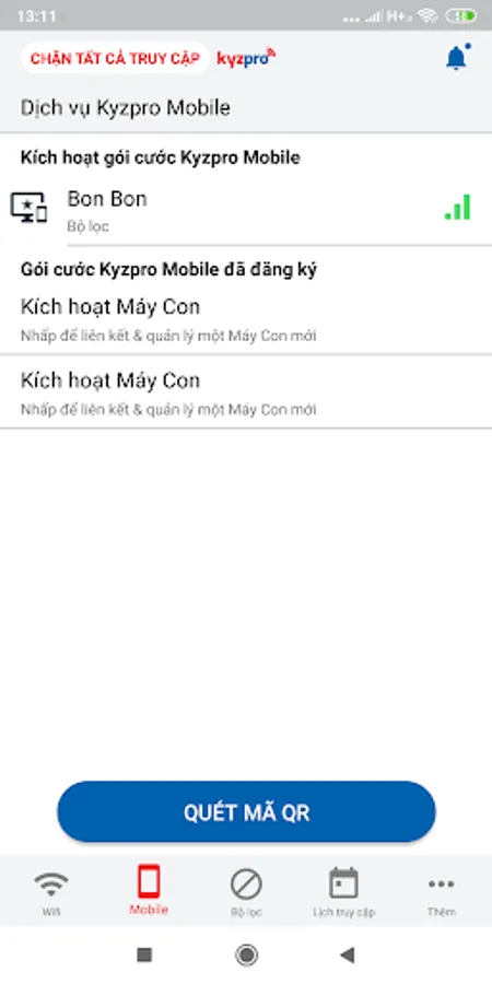 Social development led to the development of the internet has brought many benefits to human life. However, not all content on the internet is healthy and suitable for all ages. Violent, depraved, and negative content is still available from various websites and social networks, while the busy life makes it difficult for parents to control the behaviors of their parents. When using the Internet, there are significant dangers for children. Understanding that, Kyzpro application will help parents manage children's internet access 1 through both Wifi and 3G / 4G easily, and provide parents an educational and child protection solution for their children. most representative!