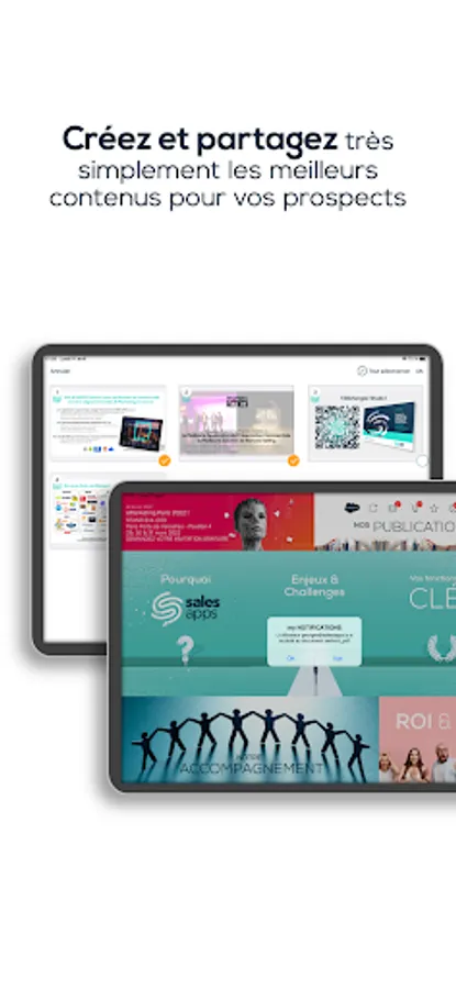 Salesapps supports the salesperson in their daily activity by structuring and improving the use of marketing materials. Operating 100% offline, Salesapps helps the salesperson to provide the right information at the right time, to effectively personalize his media for the needs of his client and to engage his prospects more actively. The connection to the CRM saves him quality time by automating a complete reporting of his appointments directly in his CRM.