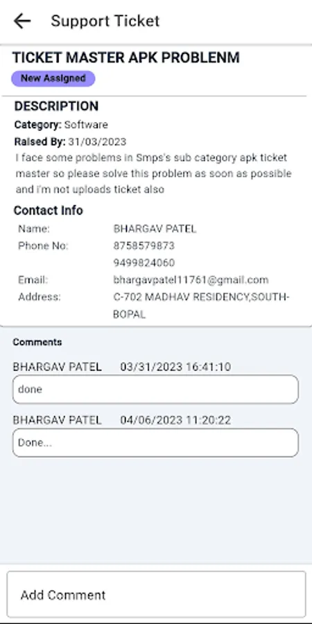 Service Call Screenshots