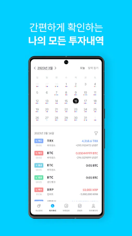 - You can easily analyze your own investment records by viewing transactions and deposit and withdrawal history on a calendar.