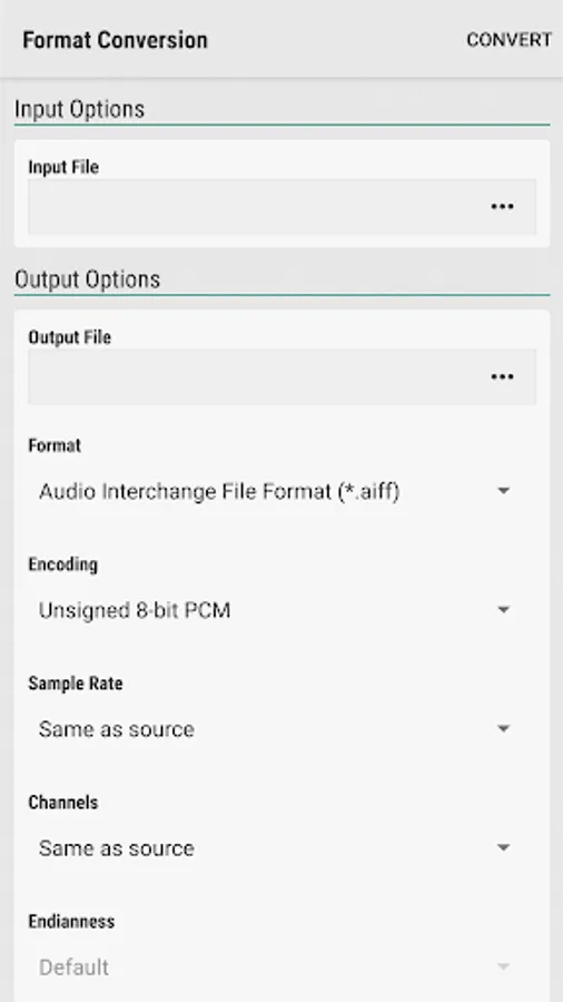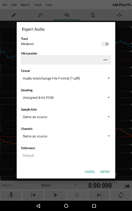 • Supported export formats: aiff, caf, flac, m4a, mp3, ogg, pcm, wav