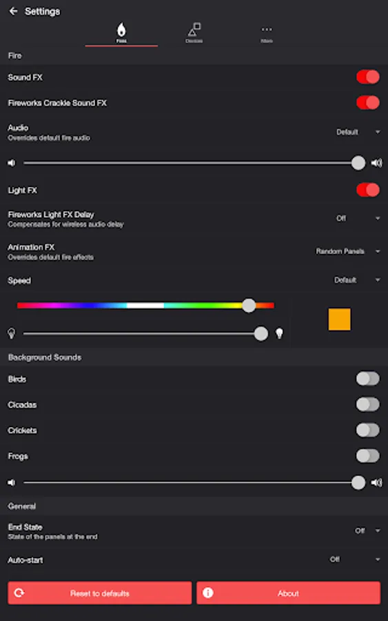 Set the mood using your Nanoleaf panels. Watch your panels glow and flicker to the sounds of a fire.