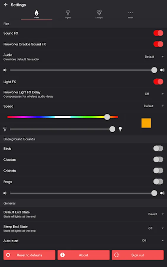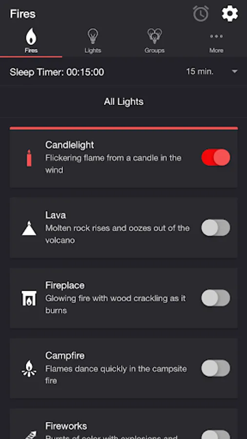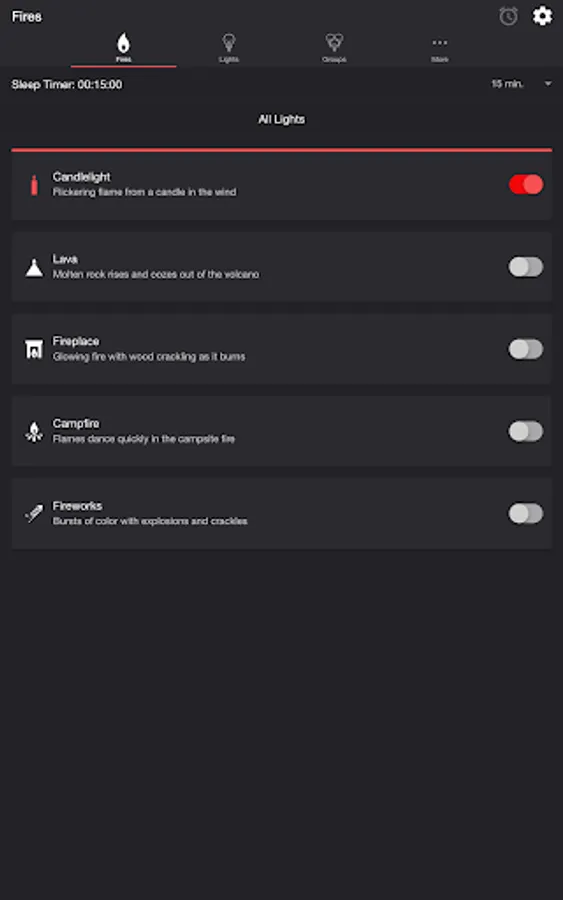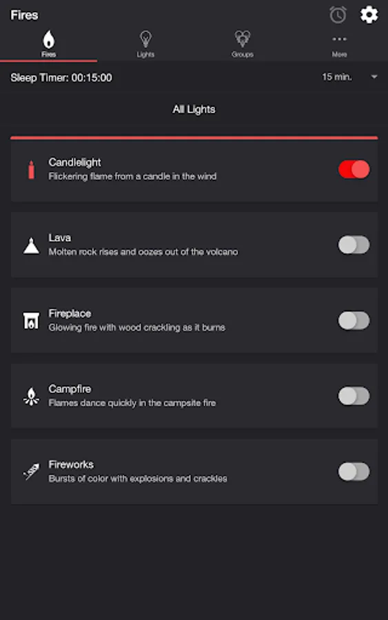 • Sleep Timer with audio fade out. Sleep End State setting lets you choose what happens to the state of the lights when the sleep timer ends.