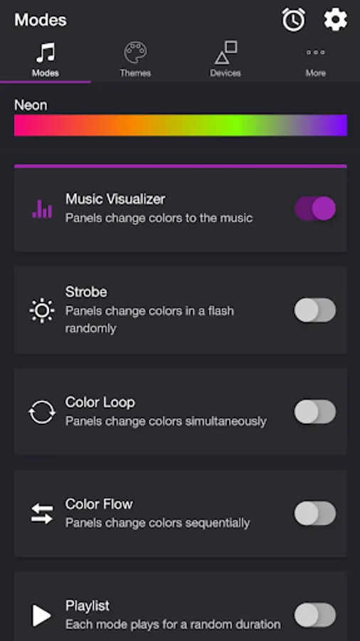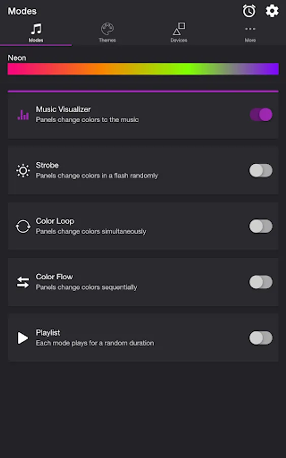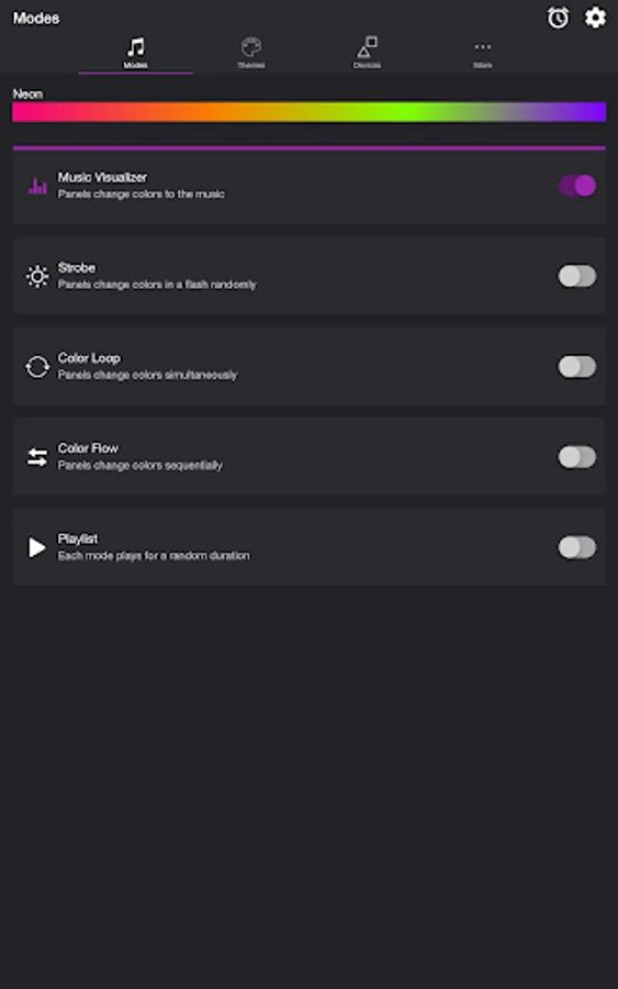 • Music Visualizer — Panels change colors to the music (device microphone required)
