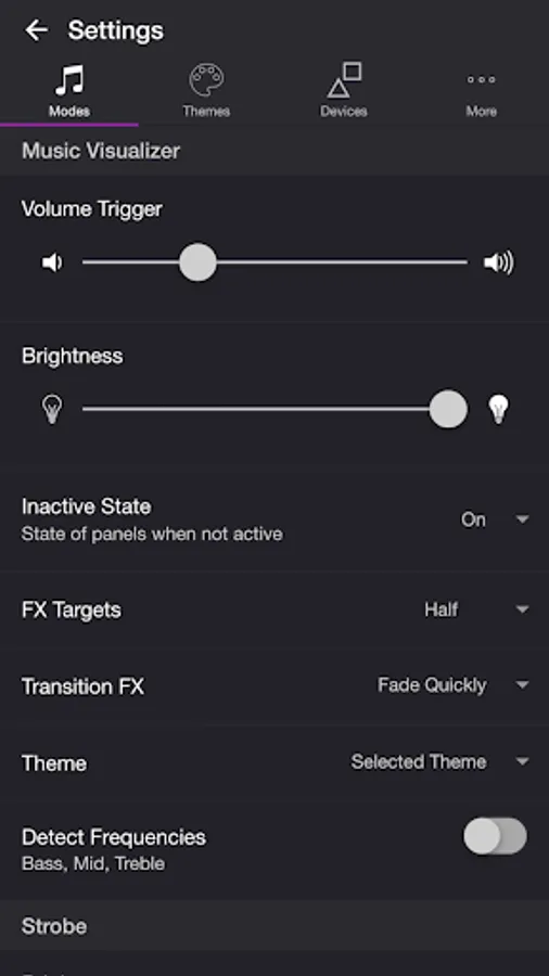• Set the volume trigger for the light effects