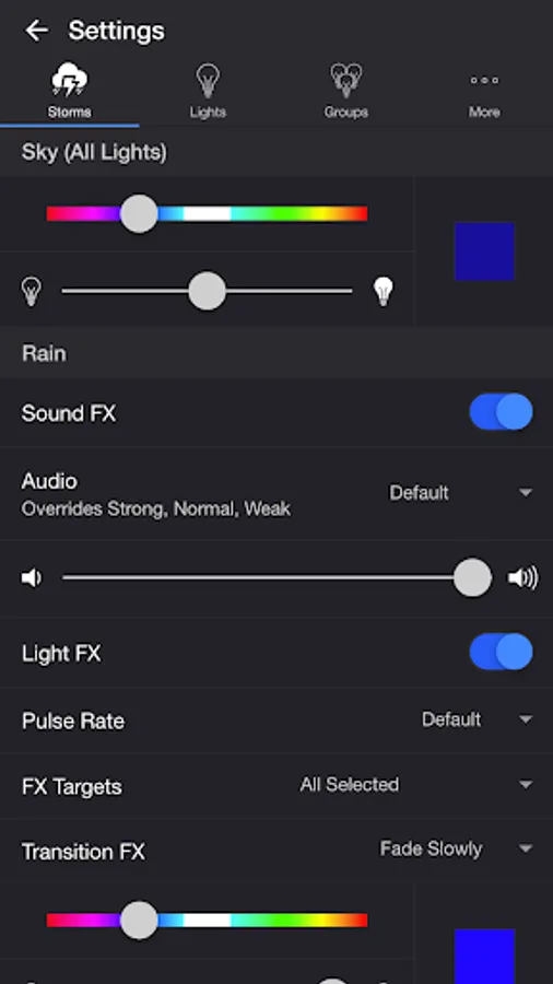 • Change rain transition effects (pulse, fade quickly, fade slowly)