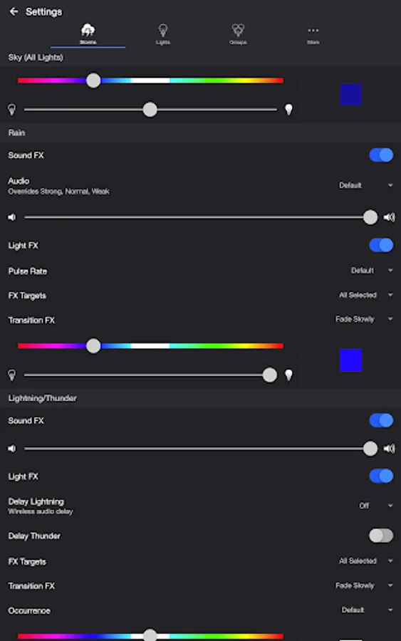 • Change lightning transition effects (random, flicker, flash, pulse, fade quickly, fade slowly)