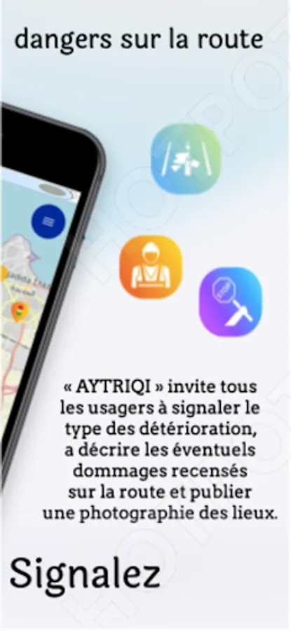 To this end, "AYTRIQI" invites all road users to connect to the application to report the most degraded roads that pose the most safety problems. To report, the Internet user had to first identify the type of deterioration, and provide as much information as possible to allow the degradation to be precisely located (geolocation, geographical point of reference on the map, etc.).