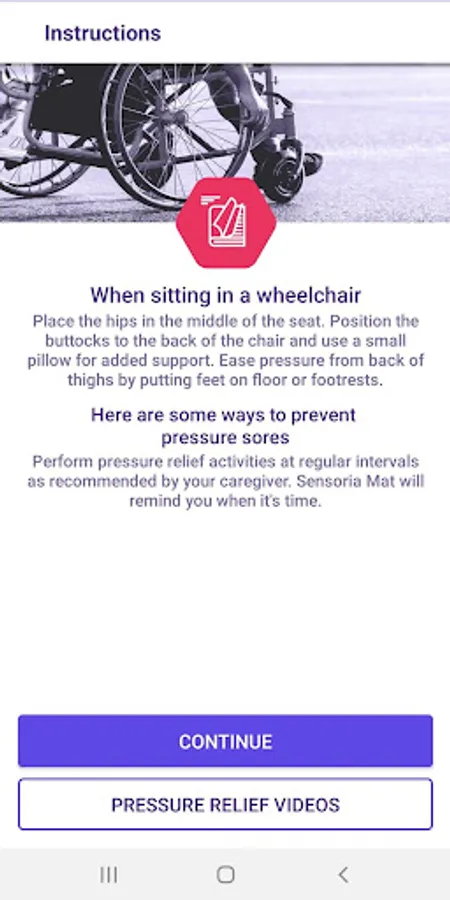 Leveraging Sensoria Mat, a wheelchair cushion with embedded pressure sensors and electronics, the patient can be alerted when they need to perform pressure relief exercises.