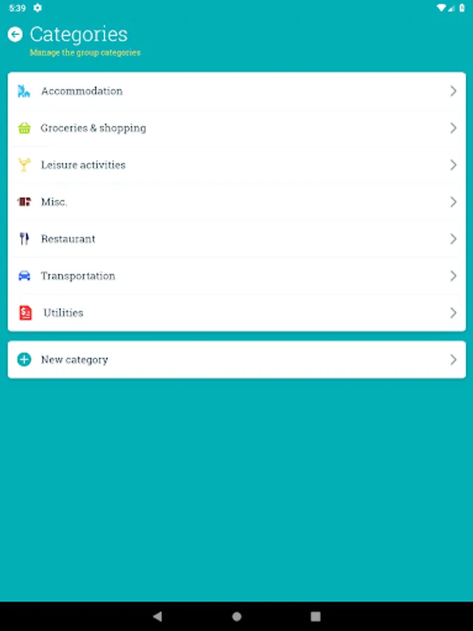 Add the categories that fit your needs to keep track of your expenses