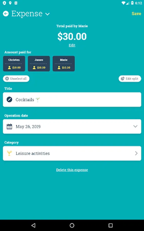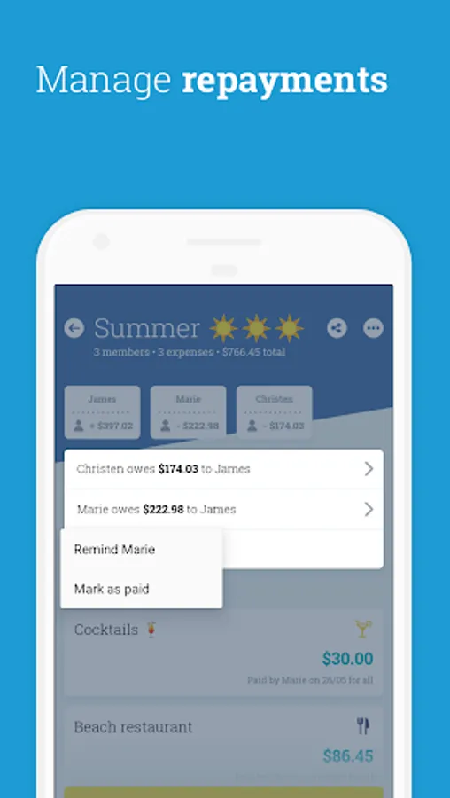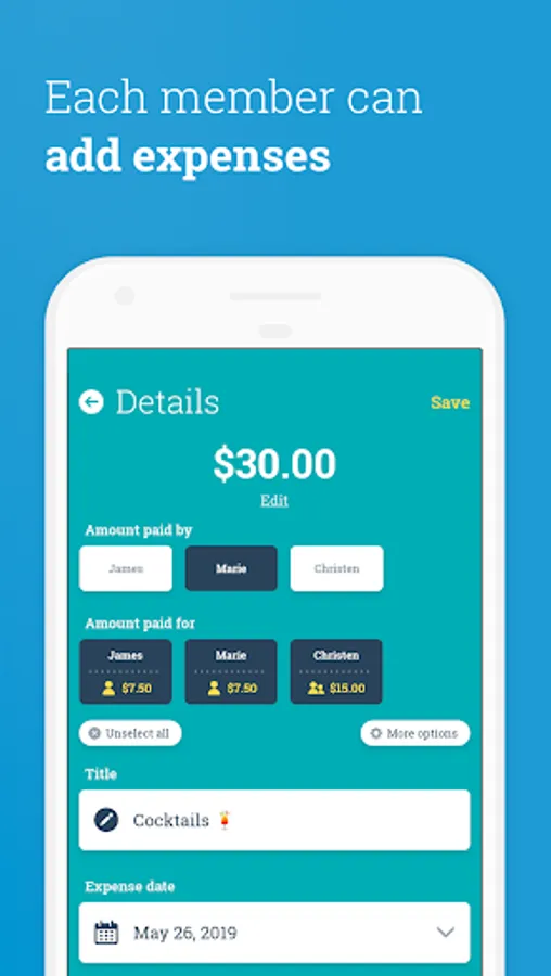 • Make your event accounting easier, to repay later (birthday, bachelor party, trip)
