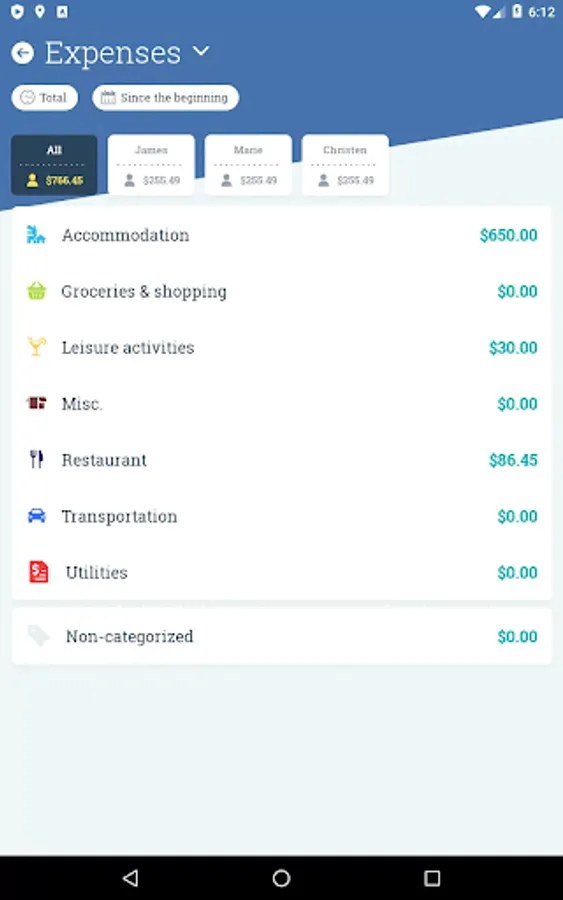 Check the budget by category and by group member