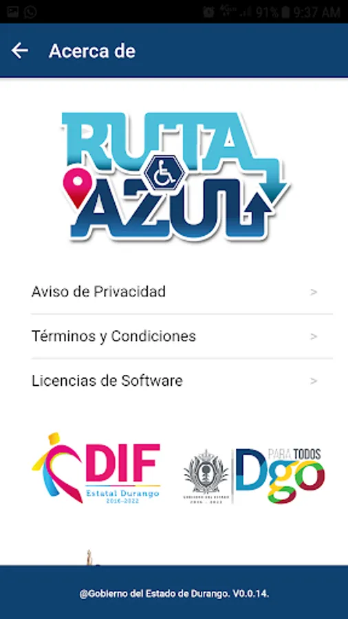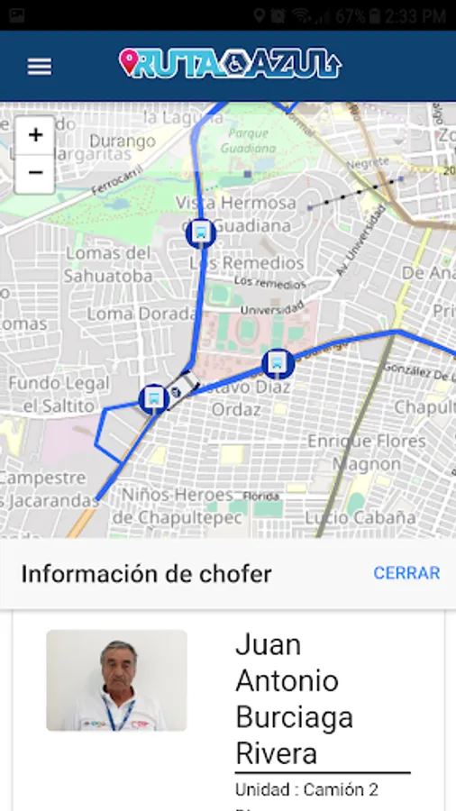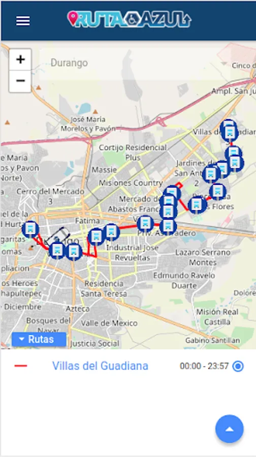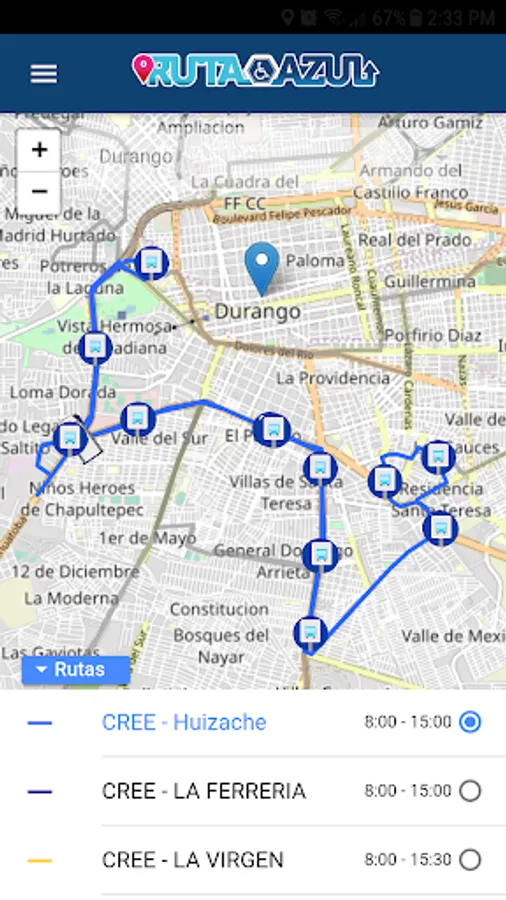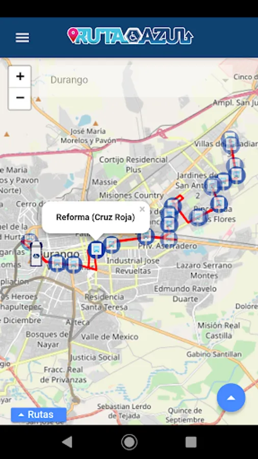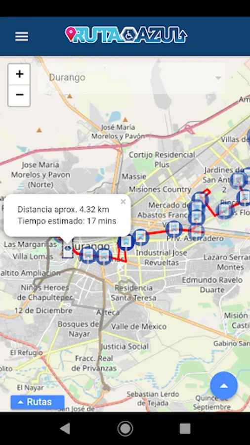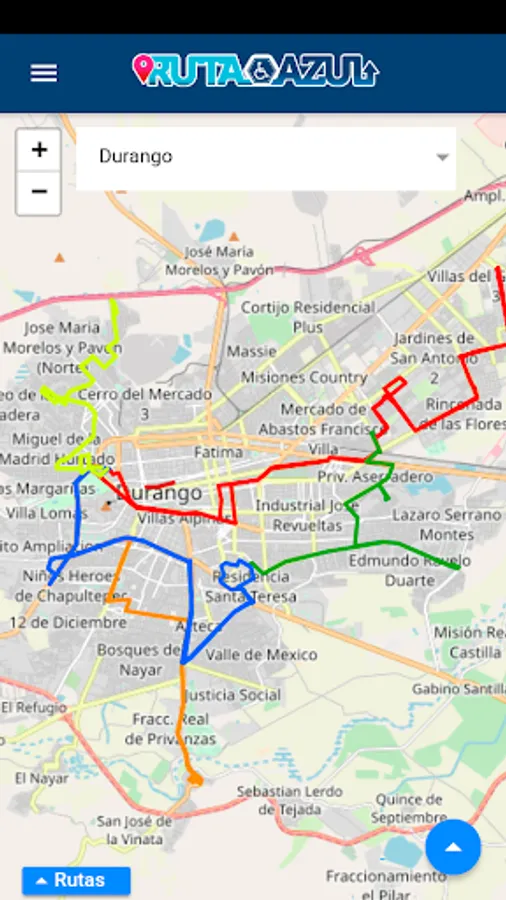 The Ruta Azul application currently only contains the routes of the city of Durango.
