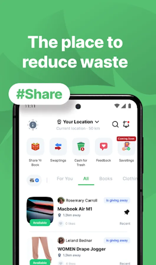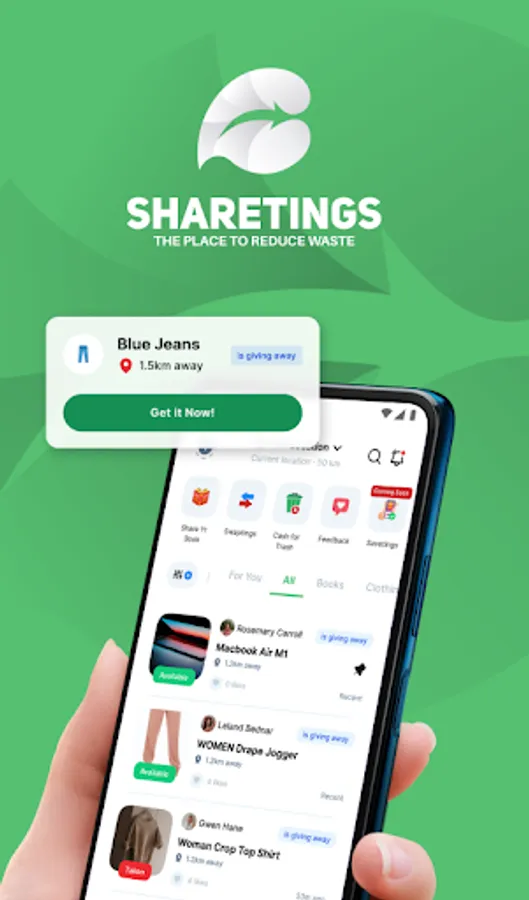 Sharetings is a hyper-local, peer-to-peer, waste reduction mobile marketplace that empowers individuals to make more environmentally conscious decisions by enabling them to share, swap, or save usable items instead of disposing of them or purchasing new ones. By leveraging the power of community and technology, Sharetings encourages sustainable consumption and helps reduce waste and carbon emissions.