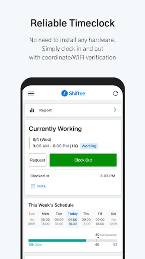 Shiftee provides time and attendance features for work from home and offsite work as well.