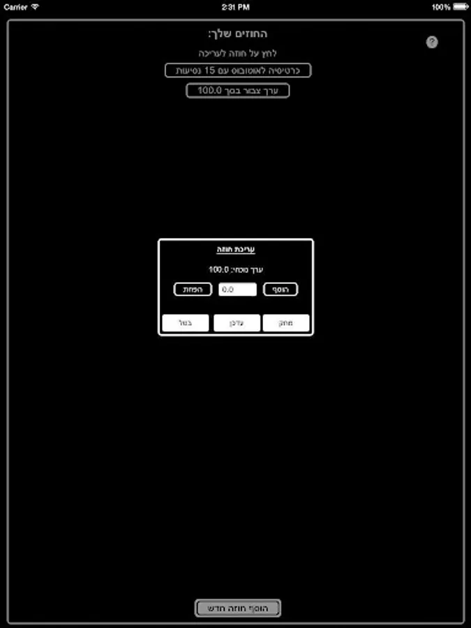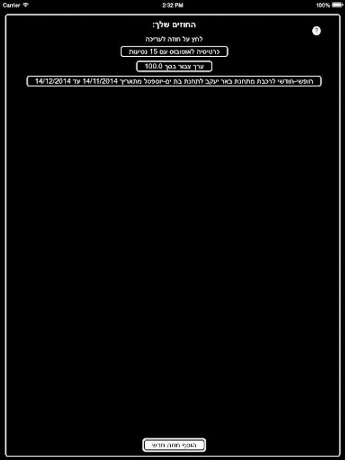 ההפעלה היא פשוטה מאוד ונגישה לכל אחד: הוסיפו את הסדרי הנסיעה שכרטיס הרב-קו שלכם מכיל בצורה ידנית ע״י כפתור ״הוסף הסדר נסיעה״. על מנת לעדכן הסדר נסיעה, לחצו על הסדר הנסיעה ושנו את פרטיו - או מחקו אותו.