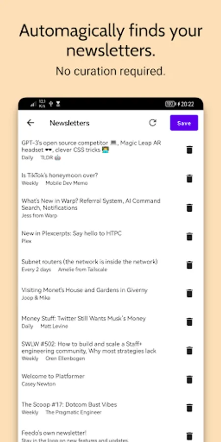 • 🧠 Smart: Feedo automagically finds the newsletters in your inbox. No need to manually tell it which emails are newsletters (although you can).