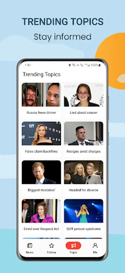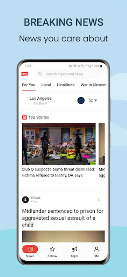 More than news, the app offer topics about : world news, weather, business, football, sport, showbiz, science and health stories.