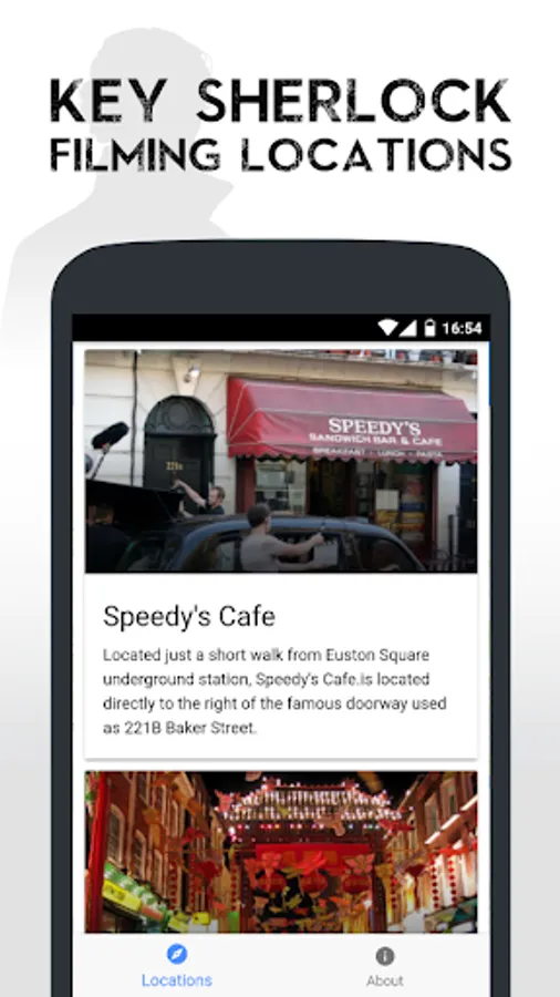 Featuring over fifteen key filming locations from all three BBC series, spanning Piccadilly, Chinatown, Westminster and beyond, this app is the perfect accompaniment for an absorbing stroll around central London.