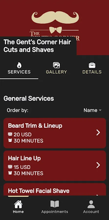 Create and manage your appointments from The Gent's Corner in a couple of clicks.
