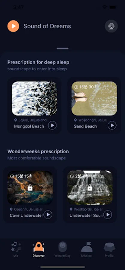 * Nature sounds: waterfall, wave, river, seaside, underwater