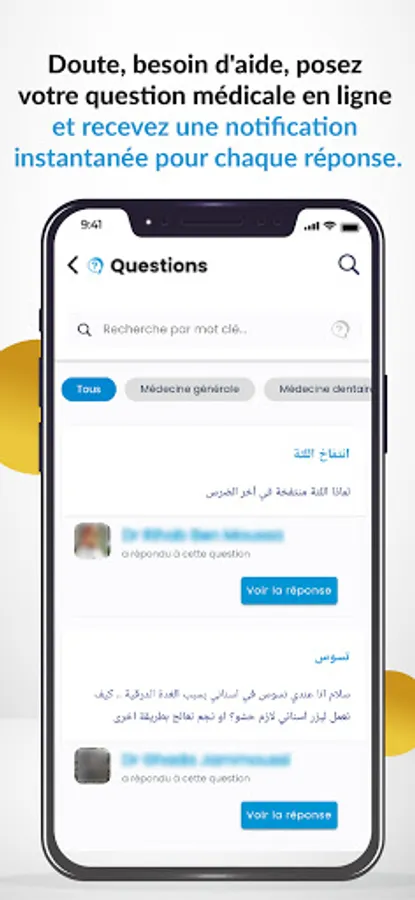 2- Gestion sécurisée des questions médicales: Répondez depuis votre application aux questions médicales des patients, vous pourrez pouvez publier les questions pertinentes en préservant l'anonymat des utilisateurs.