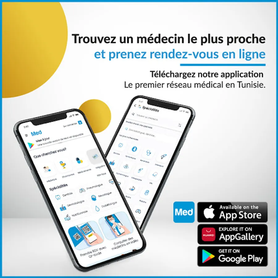 1- Annuaire médical complet: Consultez l'annuaire med.tn sur l'application et bénéficiez des fonctionnalités avancées tel que la géolocalisation et la recherche par proximité.