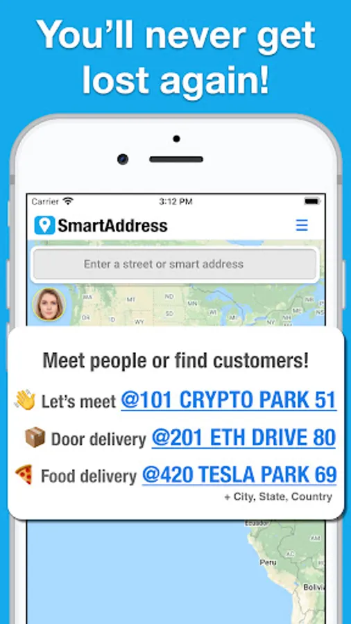 You can use smart addresses to meet people or find your customers. In fact, people in 150+ countries are already using smart addresses today.