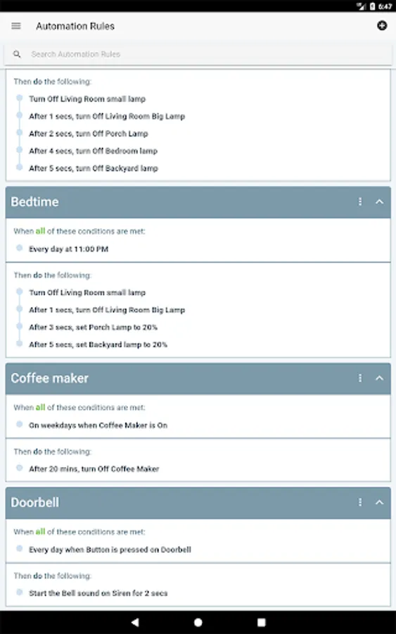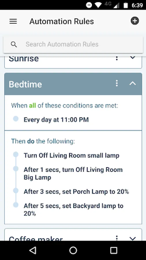 · Create Automation rules that simplify your life. For example, lights can be turned on automatically at sunset